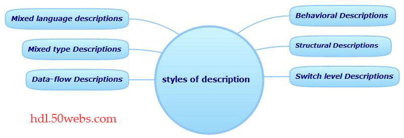 There are different styles of writing the descriptions both in VHDL and Verilog. These styles are broadly classified into 7 types as shown below. These styles are common to VHDL and Verilog HDL.